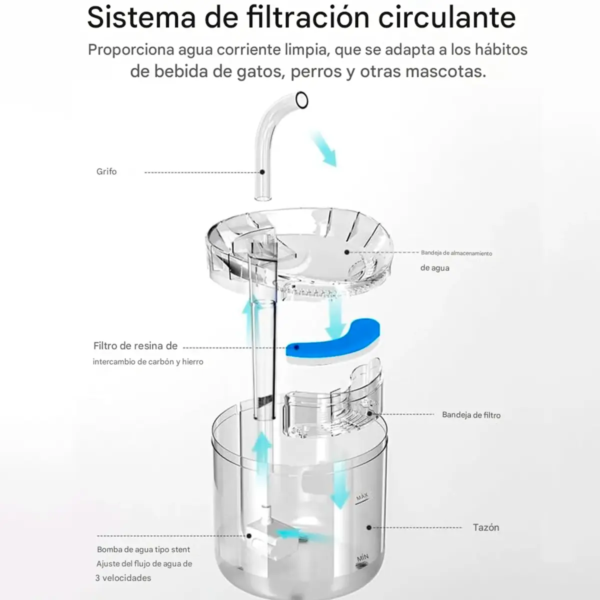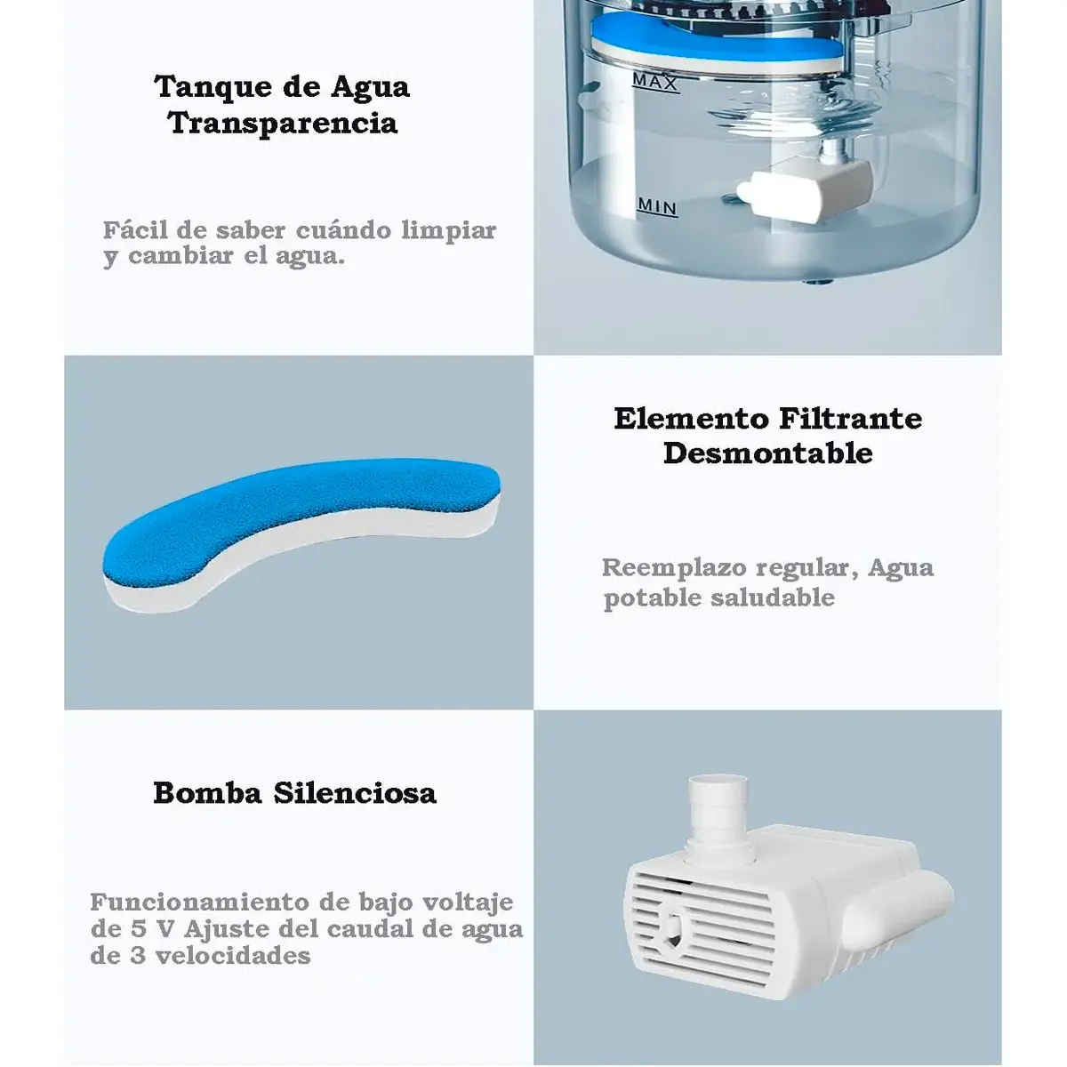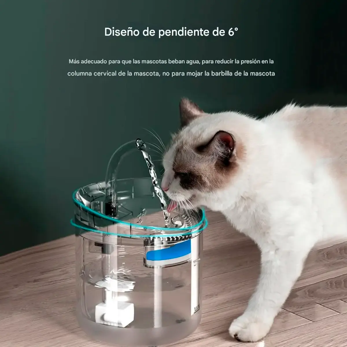 La Fuente Bebedero 2L con filtro mantiene el agua en movimiento para que tu mascota beba más y mejor.