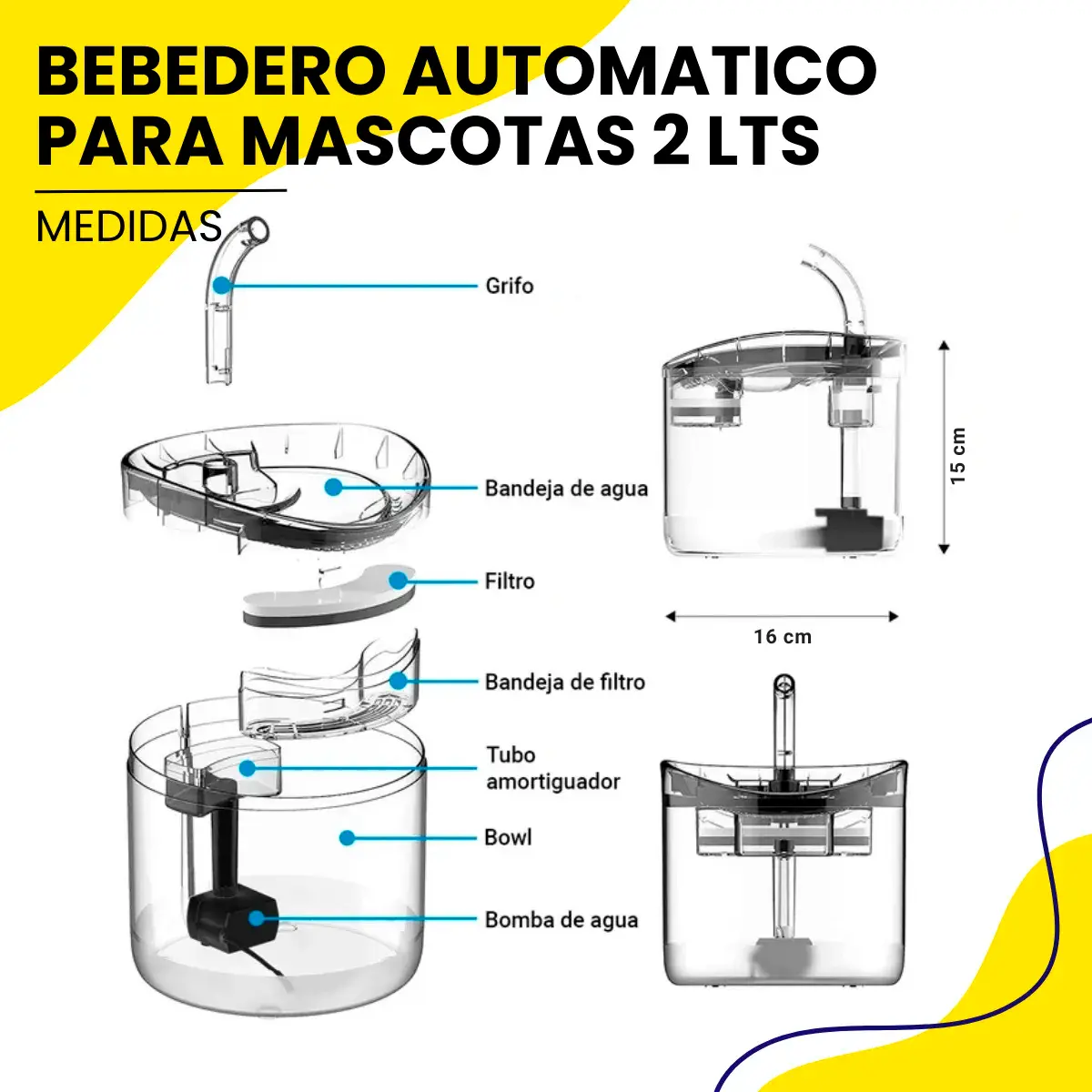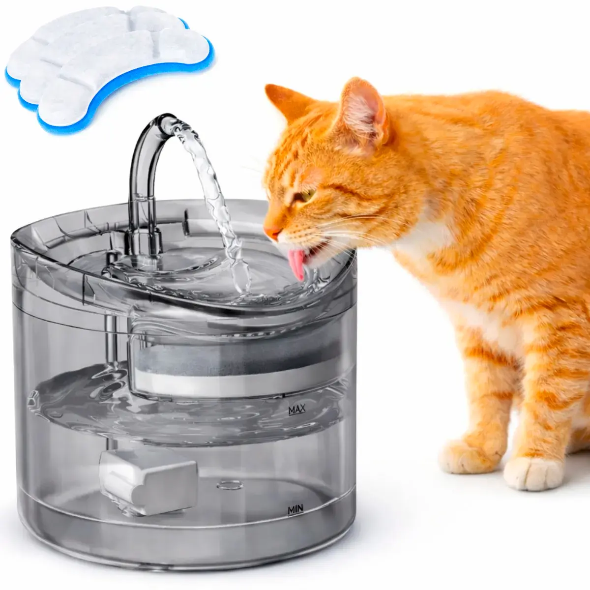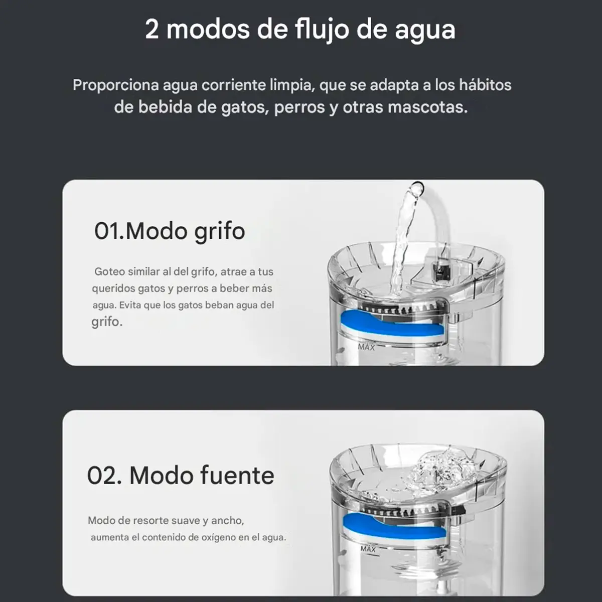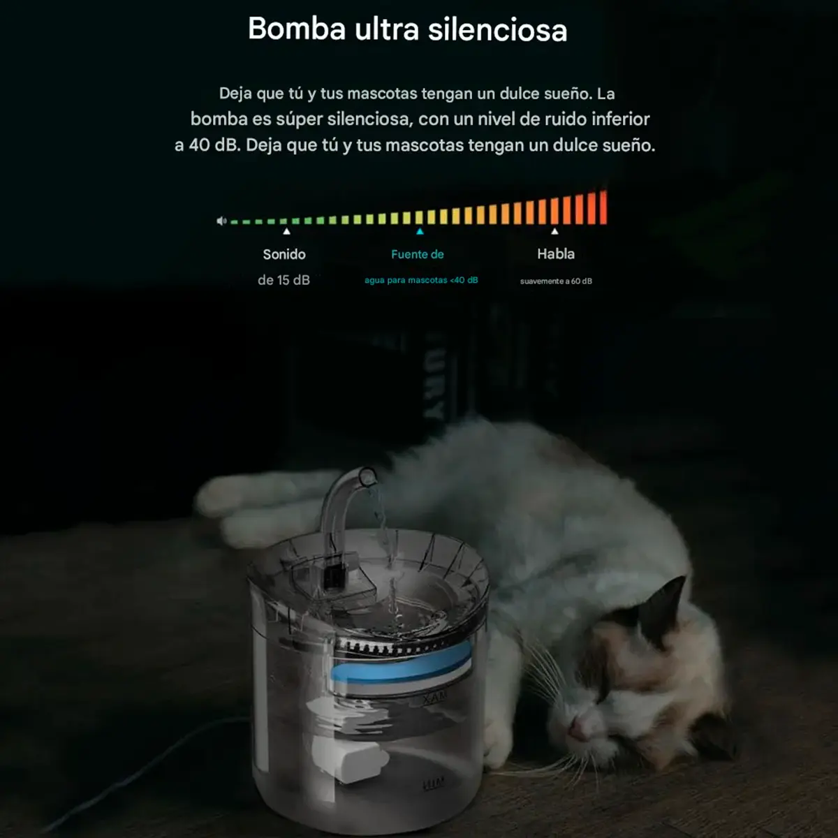 La Fuente Bebedero 2L con filtro mantiene el agua en movimiento para que tu mascota beba más y mejor.