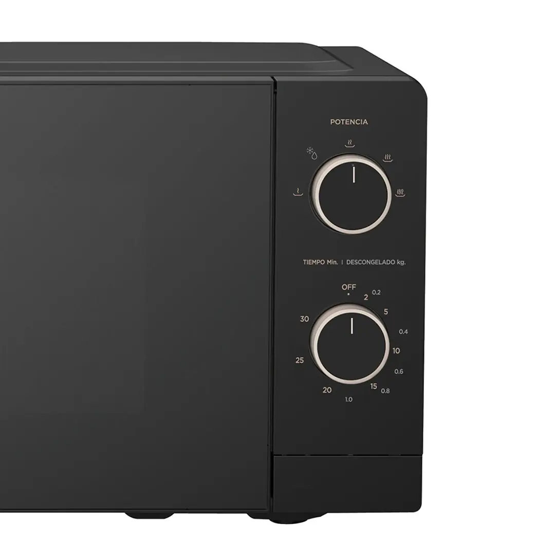 Diseño Premium y Compacto: Su estética Black Matte con controles analógicos ofrece un manejo intuitivo y un aspecto elegante que no pasa desapercibido.