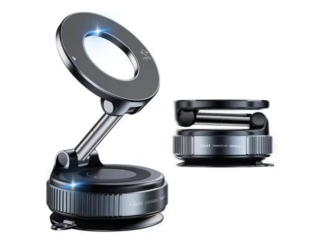 Doble Fijación: Combina un potente sistema de imanes con una ventosa mecánica de succión al vacío para una sujeción ultra firme, incluso en caminos irregulares.